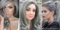 Серый цвет волос выглядит сегодня гламурно и экстравагантно. Множество оттенков серого позволяет подобрать серый цвет к лицу любой модницы.