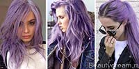 Фиолетовые волосы могут выглядеть ярко и необычно. В то же время светло-фиолетовый оттенок могут выбрать скромницы и пожилые дамы, желающие освежить цвет лица.
