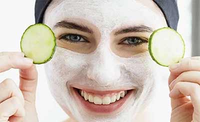 2) Разрезанным вдоль огурцом протирают кожу лица, дают соку подсохнуть в течение 5-10 минут и затем смывают теплой водой.