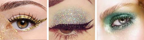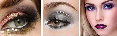 Рекомендуемыми оттенками в новогоднем макияже будут землистый, желтый, коричневый, синий, зеленый и все их варианты - фиолетовый, бирюзовый, изумрудный.