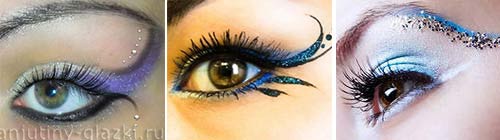 Выбирая новогодний макияж необходимо определиться с образом в целом, если это будет классический «парадный» образ, то глаза можно просто ярко выделить, а если Вы собираетесь участвовать в карнавале, и уже определились с костюмом, то и макияж должен быть соответствующим.