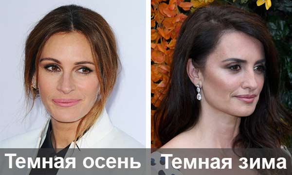 Темную осень часто путают с темной зимой, так как внешность выглядит контрастной благодаря сочетанию светлой кожи и темных волос. Но у осенних девушек в волосах всегда будет присутствовать теплый каштановый отлив. Глаза «темной осени» обычно карие, янтарные, зеленовато-карие. Вам подойдут яркие оттенки теплой гаммы – шоколадный, коричневый, бордовый.